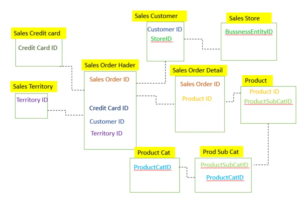 • Sales Store: Contains information about retail or wholesale stores involved in sales transactions.