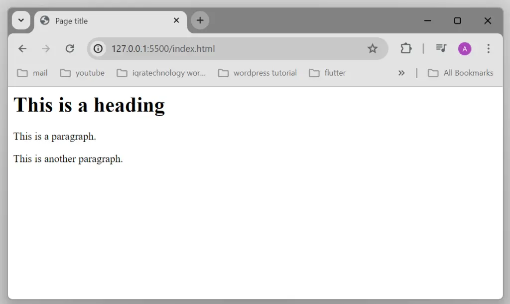 Everything inside the <body> tag is what we see on the webpage. And the text inside the <title> tag is what appears on the browser’s tab.