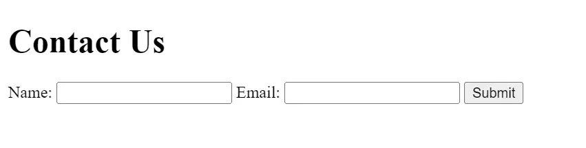 - A form with text input labeled “Name:”, an email input labeled “Email:”, and a submit button.