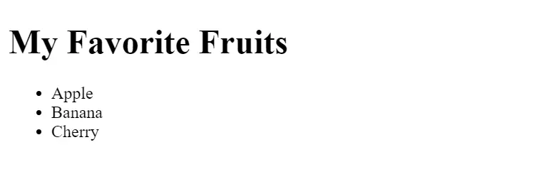 - An unordered list with three items: Apple, Banana, and Cherry.