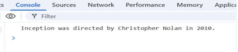 return `${this.title} was directed by ${this.director} in ${this.releaseYear}.`;