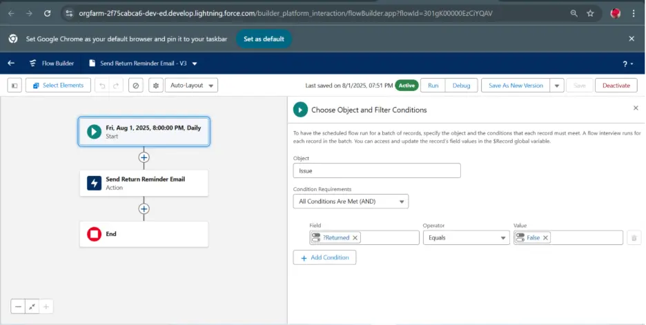 • Columns: Book__r.Name, Issue_Date__c, Returned__c