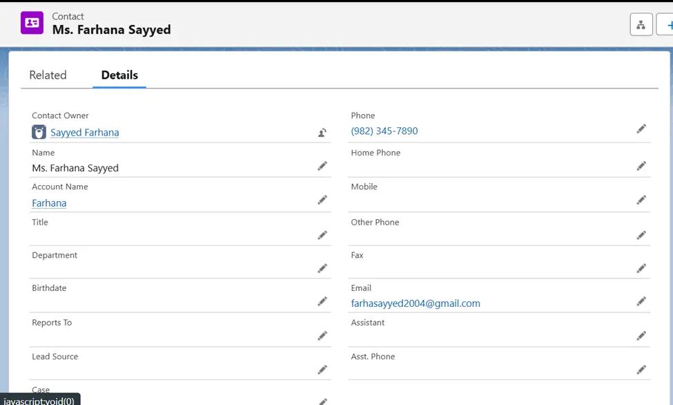 We have customized the Contact object as follows: