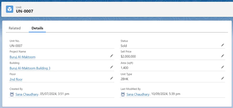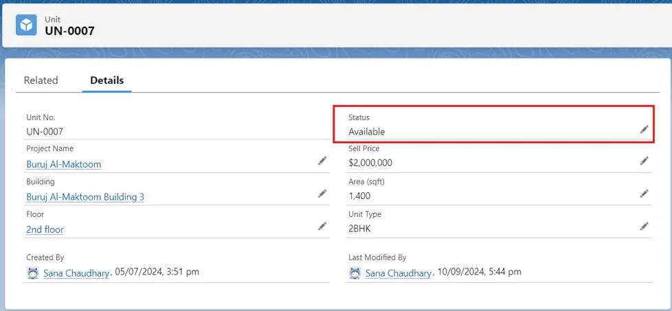 When the Opportunity stage changes to “Sold,” the system will automatically check if the related Unit’s stage is not “Sold.”