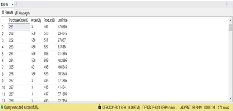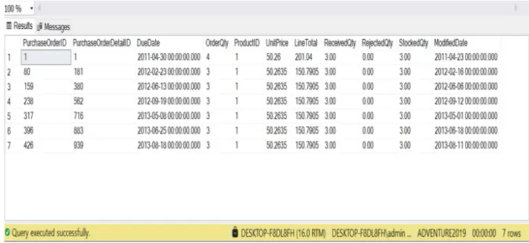 4. Write SQL Query to get PurchaseOrdeID, OrderQTY, UnitPrice from Purchasing.PurchaseOrderDetail table where ModifiedDate Greater than ‘2015-01-01’