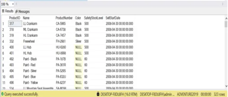 5. Write SQL Query to get ProductID, Name, ProductNumber, Color, SafetyStockLevel, SellStartDate from Product table where ReorderPoint are less than avg (ReorderPoint).