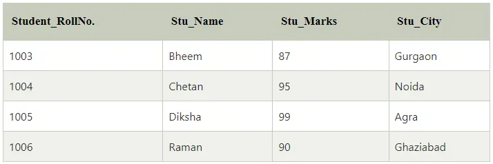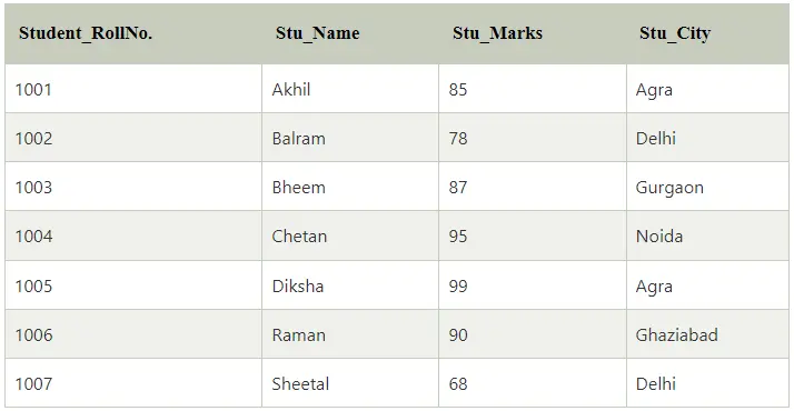 SELECT Column_Name1, Column_Name2, …., Column_NameN FROM Table_Name WHERE Column_Name Comparison_Operator ( SELECT Column_Name1, Column_Name2, …., Column_NameN FROM Table_Name WHERE condition;