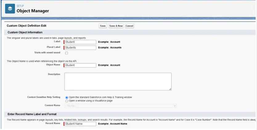 Step1: – Create a custom object named “Job Opening” in Salesforce