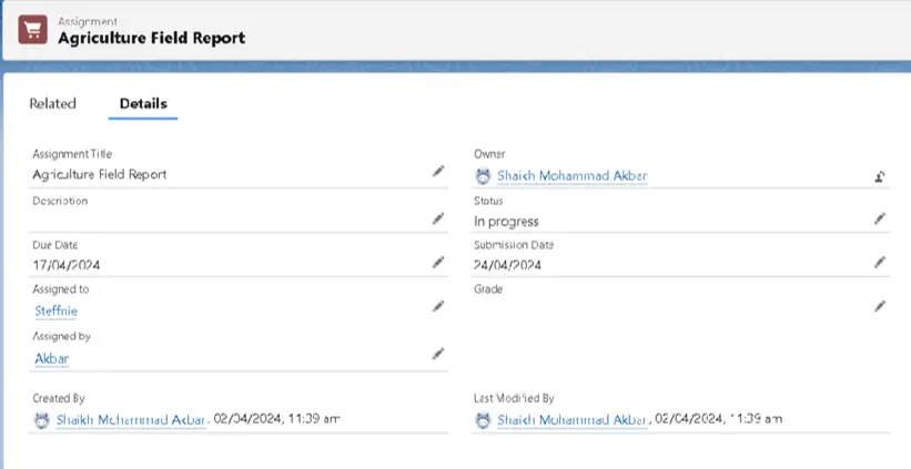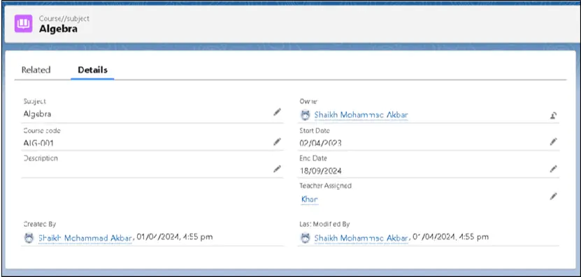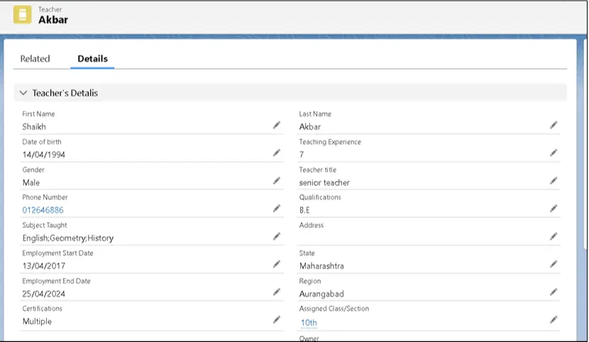 - Assigned Classes/Sections (Lookup to Class/Section or Junction Object)