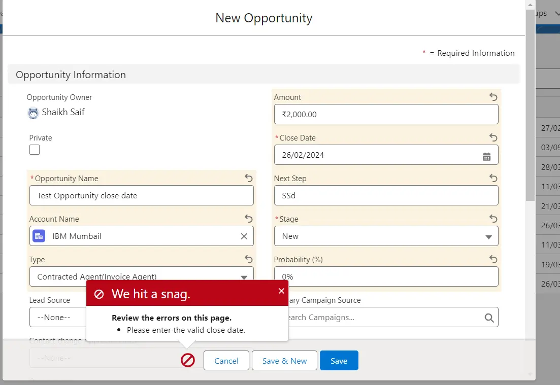 Validation Rule: Implement a validation rule that restricts users from setting the Close Date to a date that has already passed.